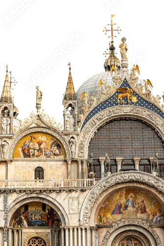 Naklejka premium Basilica and Cathedral of San Marco (St. Mark the evangelist) isolated on white background, Venice, UNESCO world heritage site, Veneto, Italy, Europe