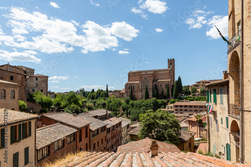 Obraz premium basilica di san domenico in siena tuscany italy seen across rooftops on a...