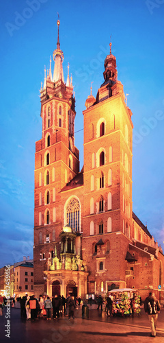 © Roman Babakin, Naklejka premium Basilica of St Mary at Main Market Square Poland evening