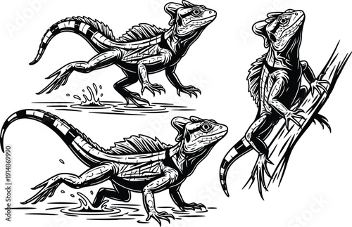 Fototapeta premium Basilisk lizard Jesus lizard Vector Illustration