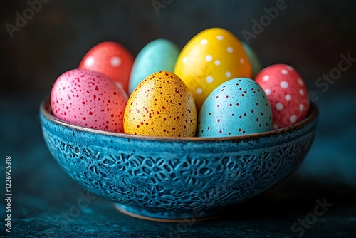 © Md, Obraz premium Basket with colorful Easter eggs,
