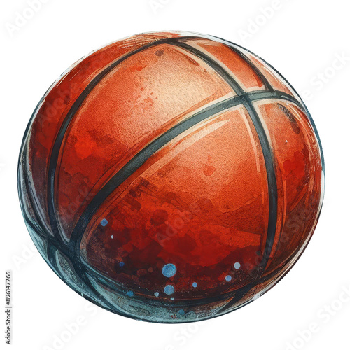 © Thitiyakorn, Fototapeta premium Basketball clipart, isolated watercolor vector illustration.