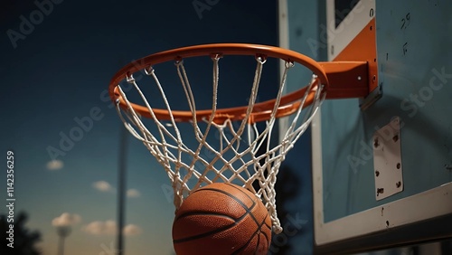 Fototapeta premium Basketball close up a e ball in hoop