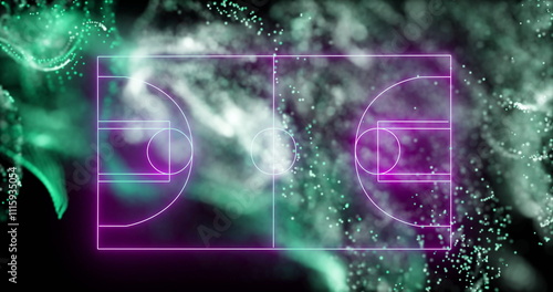 Fototapeta premium Basketball court lines image over abstract green and purple background