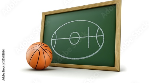© MASJAB, Fototapeta premium Basketball court plan chalkboard.