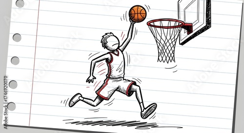 © Aquib, Fototapeta premium basketball doodle sports art character physical activity competition illustration vector sport player athlete