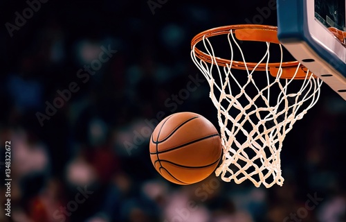 © B one, Fototapeta premium Basketball in the net. Crowd in the background