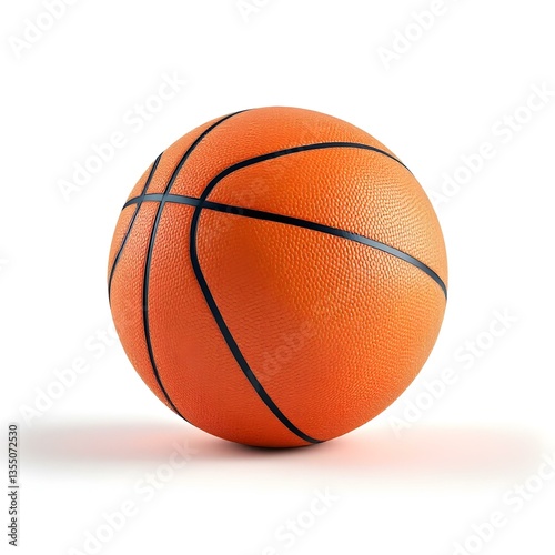 Fototapeta premium basketball, orange, spherical, textured, leather, black lines, sport equipment, closeup, detailed, realistic, studio lighting, white background