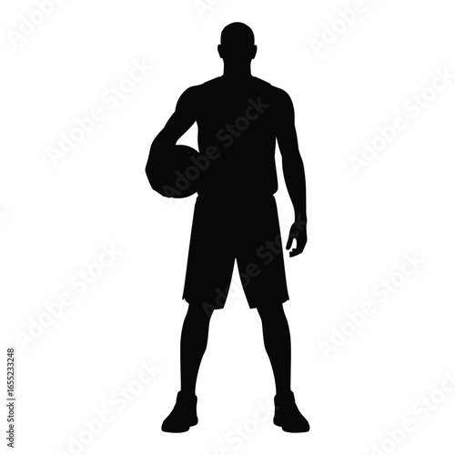 © Laboni, Fototapeta premium Basketball player holding ball silhouette
