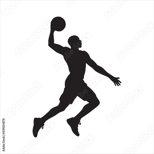 Naklejka premium Basketball Player Silhouette Vector Illustration. Basketball Dunk Silhouette...