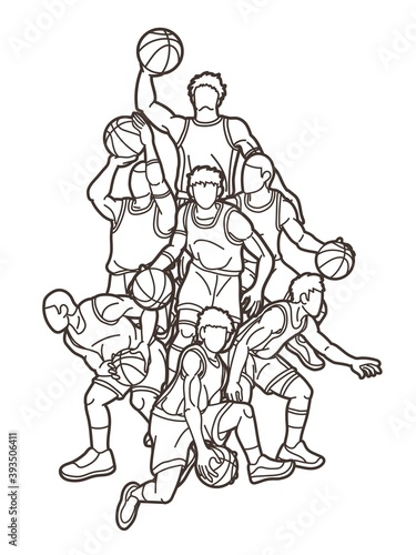Fototapeta premium Basketball players action cartoon graphic vector