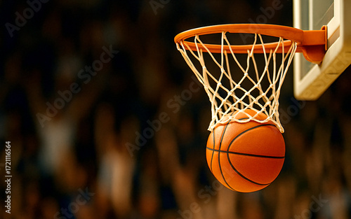 Fototapeta premium Basketball Swish with Blurred Crowd Background, basketball game, Generative ai