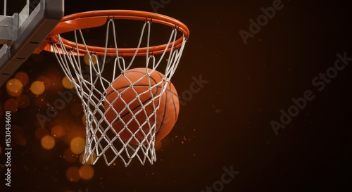 © Azizul, Fototapeta premium Basketball swishing through net on dark background