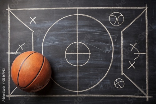 Fototapeta premium Basketball tactics drawn on black chalkboard background