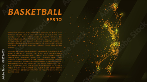 © newrossosh, Obraz premium Basketball which is composed of pixels. Particles in the form of a basketball player on a dark background. Vector illustration. Graphic concept of basketball