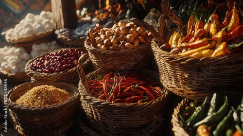 Fototapeta premium Baskets filled with various fruits and vegetables