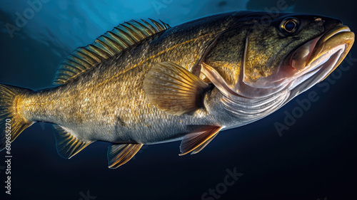 Fototapeta premium bass underwater for fishing concept created with Generative AI technology