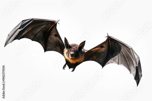 Fototapeta premium Bat flying forward with wings spread, isolated on a clean white background