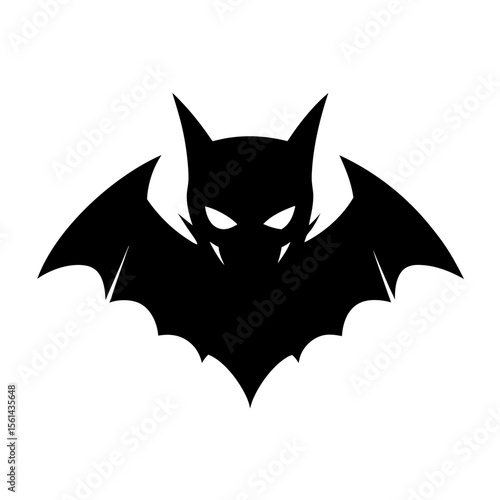 © MdJobaidul, Obraz premium Bat head full black silhouette with extended ears and face vector illustration