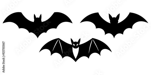 © bizboxdesigner, Naklejka premium Bat head icons vector art, Bat bat full black silhouette vector illustration