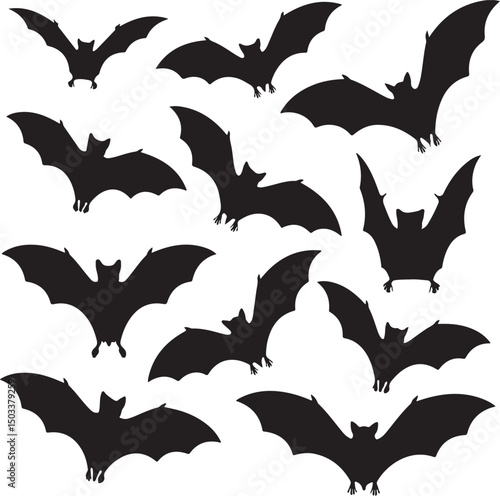 © rs_studios, Fototapeta premium Bat Silhouettes in Various Flight Poses Isolated Vector Set