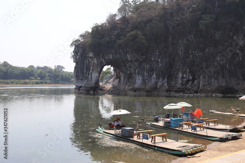 © Atlantis, Naklejka premium Bateau en bambous sur la rivière Li à Guilin, Chine