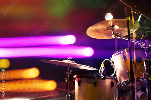 Fototapeta premium Bateria en el escenario.Musica en directo.Luces de escenario.