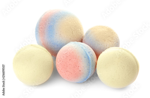 Obraz premium Bath bombs on white background. Beauty accessory