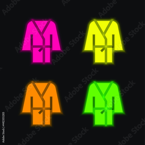 Obraz premium Bathrobe four color glowing neon vector icon
