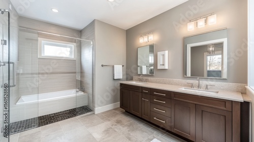 Fototapeta premium Bathroom with a floating vanity and heated flooring, 2025