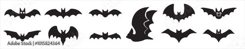 Fototapeta premium Bats silhouette vector set. Halloween bats collection. Scary, spooky, and...