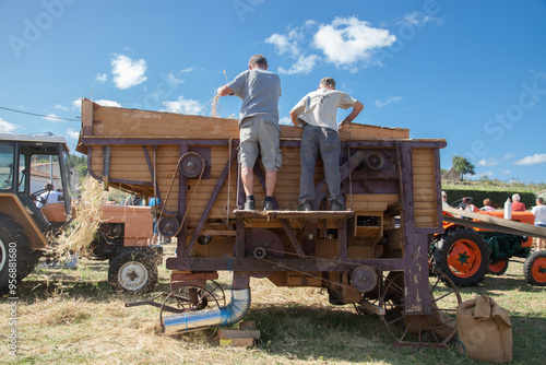 © Hervé Rouveure, Obraz premium Battage du blé avec ancienne batteuse