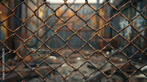 © andryan, Fototapeta premium Battered Metal Grid Fence