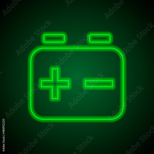 Fototapeta premium Battery accumulator simple icon. Flat desing. Green neon on black background with green light