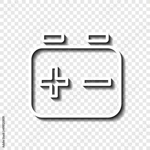Fototapeta premium Battery accumulator simple icon. Flat desing. White with shadow on transparent grid.ai