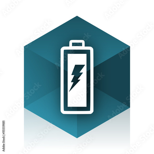 © Alex White, Fototapeta premium battery blue cube icon, modern design web element