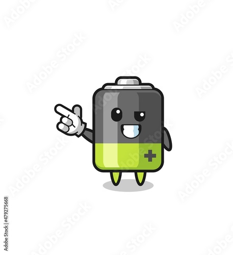 © heriyusuf, Obraz premium battery mascot pointing top left