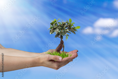 © Bastian Weltjen, Obraz premium Baum in den Händen