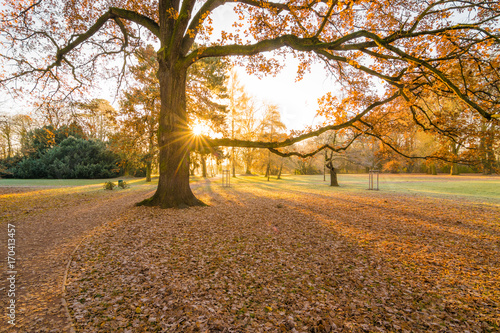 © kentauros, Naklejka premium Baum in einem Park am Herbstmorgen