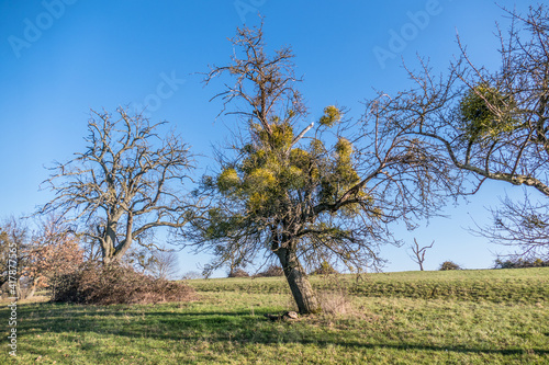 © focus finder, Fototapeta premium Baum mit Misteln im Februar