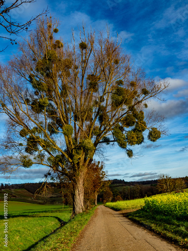 Fototapeta premium Baum mit vielen Misteln im Spätherbst