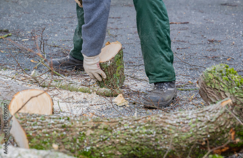 © Natascha, Fototapeta premium Baumarbeiten und Baumfällung an einem kranken Baum