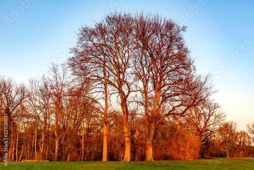 © helmutvogler, Obraz premium Baumgruppe im Abendlicht
