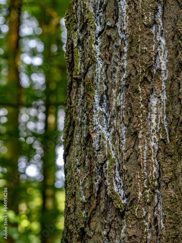 © focus finder, Obraz premium Baumharz an einem Baumstamm