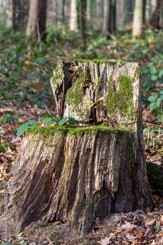 Fototapeta premium Baumstumpf mit Moos im Wald