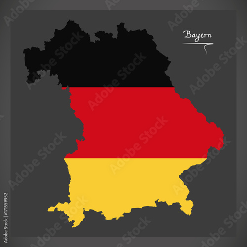 Obraz premium Bayern map of Germany with German national flag illustration