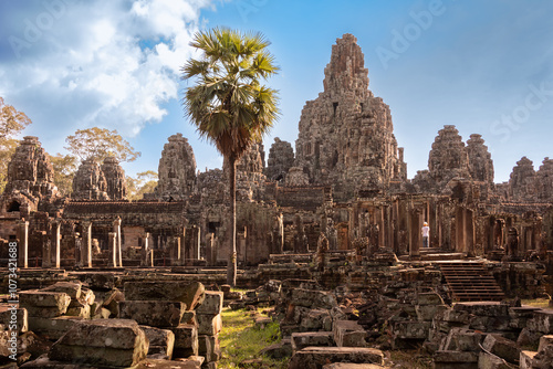 © Maresol, Obraz premium Bayon temple, ancient temple ruins in Cambodia
