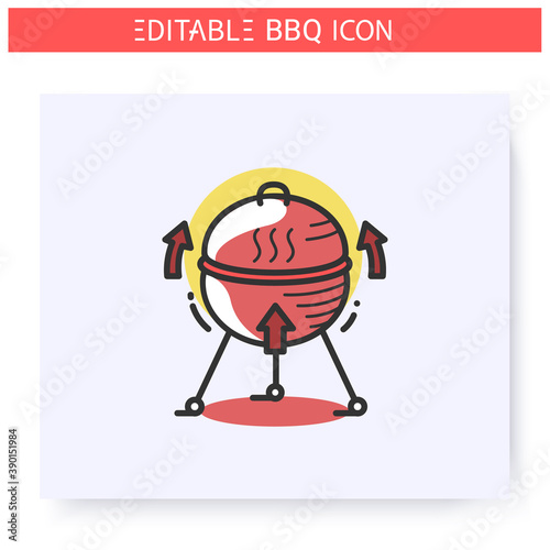 Fototapeta premium Bbq grill color icon. Charcoal barbecue. Closed brazier. Backyard picnic concept. Barbecue party or summer camping. Grilled food, grill cooking. Isolated vector illustration. Editable stroke