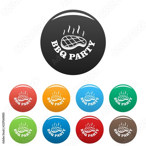 Fototapeta premium Bbq party icons set 9 color vector isolated on white for any design