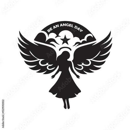 © Faysal, Obraz premium Be an Angel Day Silhouette Vector Illustration, Solid White Background.